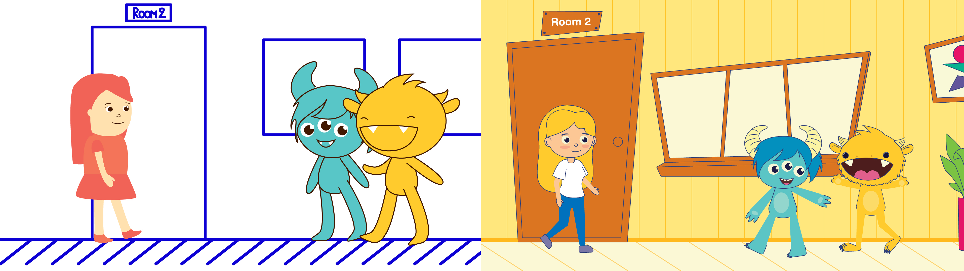 It was where the magic happens! To encourage children, regardless of their gender, to identify with any of the characters in the animated series, Shinshin wanted to use monsters as the main characters in teaching mental health. And she found that F.Learning Studio has really captured this through the attractive designs we offered. In the process of designing the style frame, F. Learning Studio: