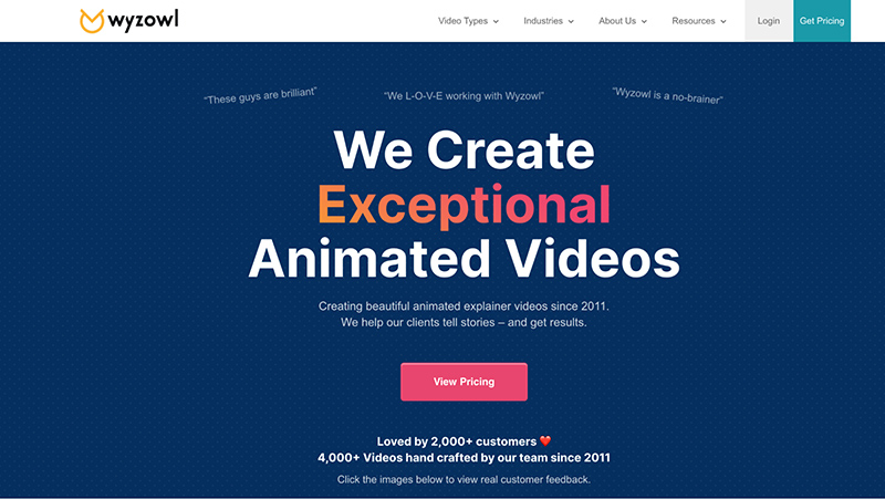 - Overview: Wyzowl is a premier 2D explainer video company that has been creating compelling visual stories since 2011. With over 4,000 videos produced for more than 2,000 companies across 40 countries, they specialize in simplifying complex ideas into engaging 2D animations.