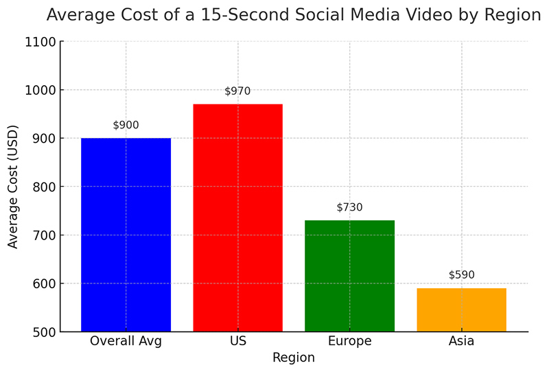The average cost of a 15-second social media video is $900, with prices ranging from $1,000 to $8,000.