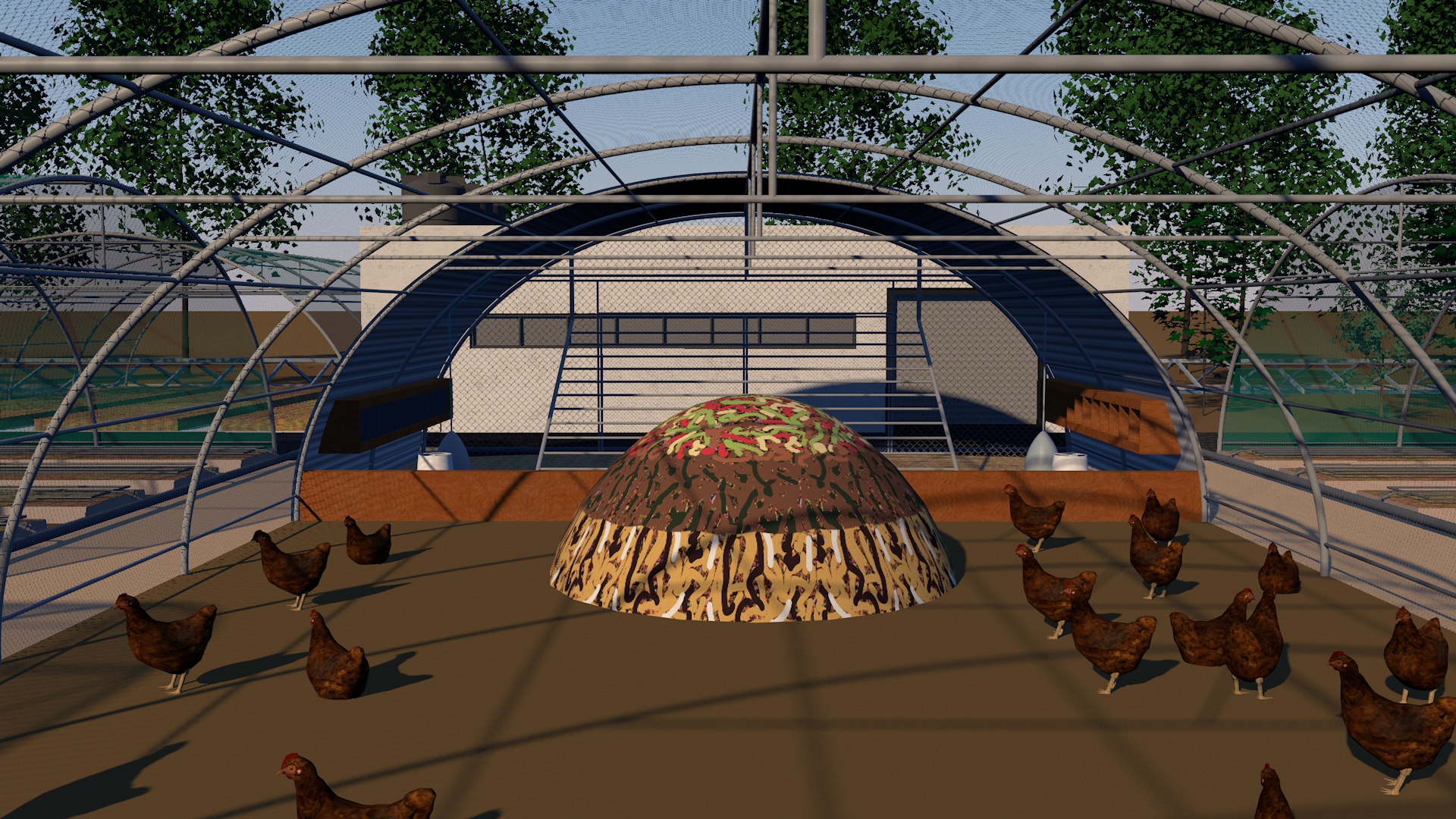 In permaculture, a high level of accuracy is essential. The full angle customization of 3D illustrator does a great job describing the system in detail, (from where to locate the worker accommodations to the storeroom). 3D effects also clearly show the depth and thickness of the straws placed in the chicken house.