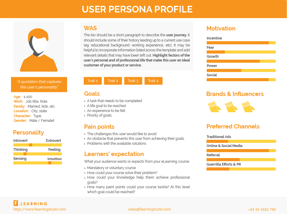 Do not worry if you have no idea what to do. Below is an example of how F.Learning organizes learners’ information into a potential learner’s persona profile.
