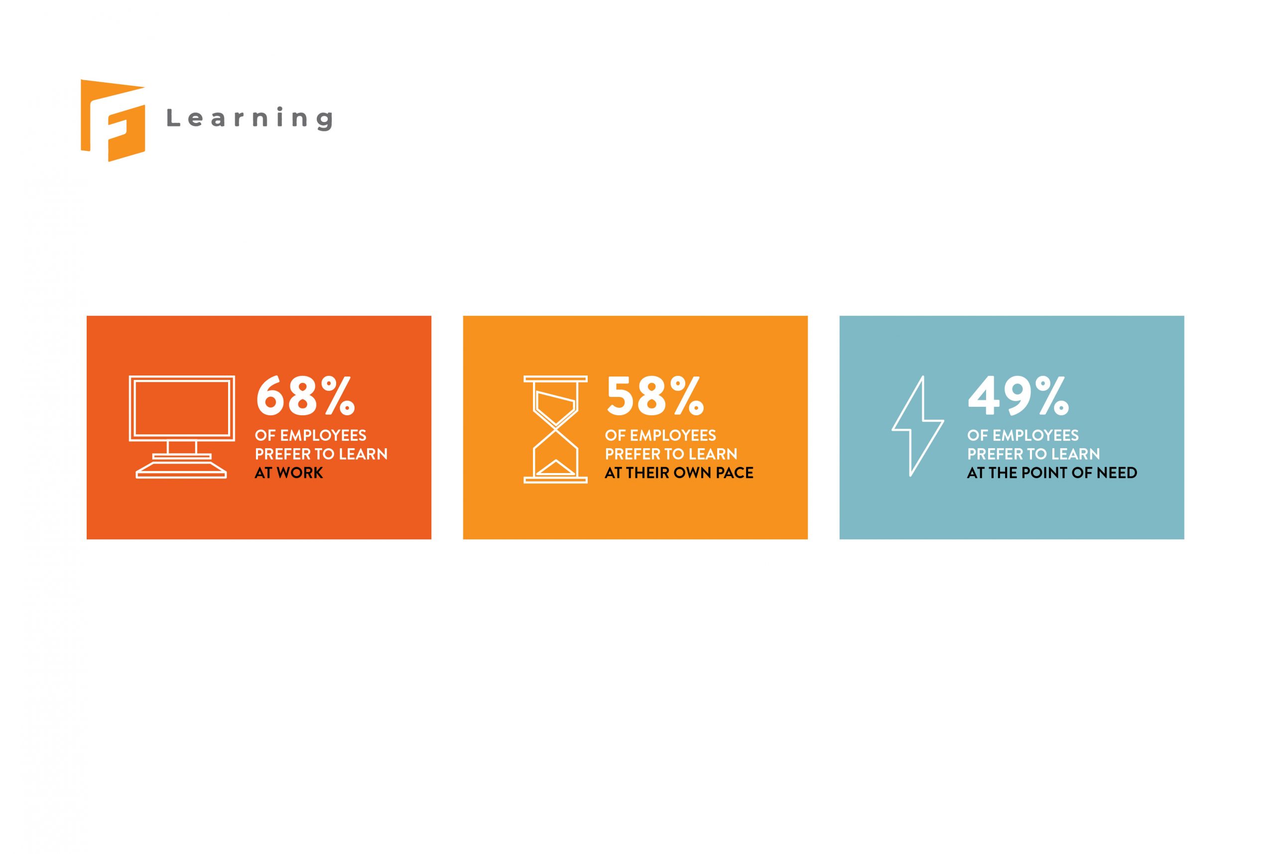 The idea of ‘learning in the flow of work’ is that employees can have short pieces of learning while working. In other words, they can access knowledge right at the time they need to address any problems or challenges. This allows employees to gain knowledge without disrupting the daily workflow.