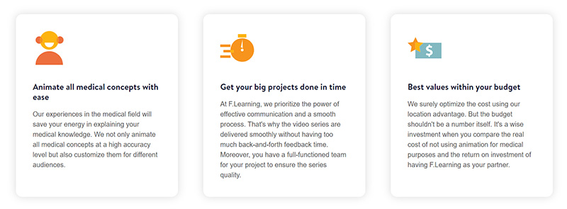 F. Learning Studio stands out by offering exceptional quality medical animations while ensuring budget-friendly solutions. By partnering with us, you can save up to 30% compared to U.S. providers. This cost efficiency, coupled with a dedication to excellence, makes us an attractive choice for those seeking top-tier medical animations that fit within our financial constraints.