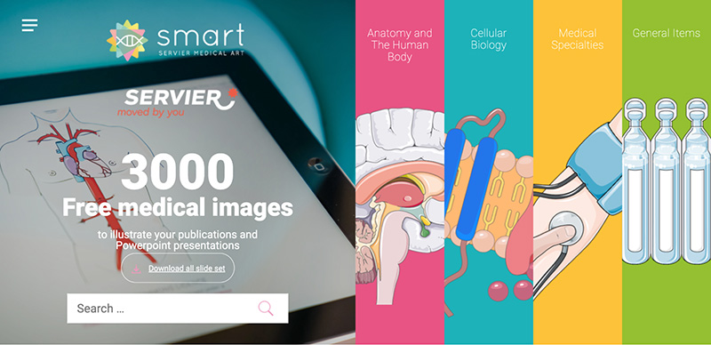 Servier is a medical animation agency providing medical artwork and images for publications and presentations. They have a wide range of curated medical visuals, making them ideal for developing engaging educational materials and enhancing your research projects.