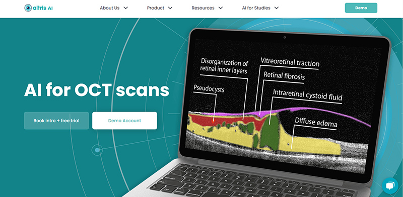 | Altris AI specializes in Artificial Intelligence solutions for ophthalmology, including OCT analysis and interpretation. While not a traditional animation company, they utilize AI-powered visualizations to aid in diagnosis and treatment planning. They have a team of ophthalmologists, AI specialists, and software engineers. They offer solutions for detecting and classifying various retinal diseases, including age-related macular degeneration, diabetic retinopathy, and glaucoma. | Early adopters of Altris AI’s technology highlight its potential to improve diagnostic accuracy and efficiency. |