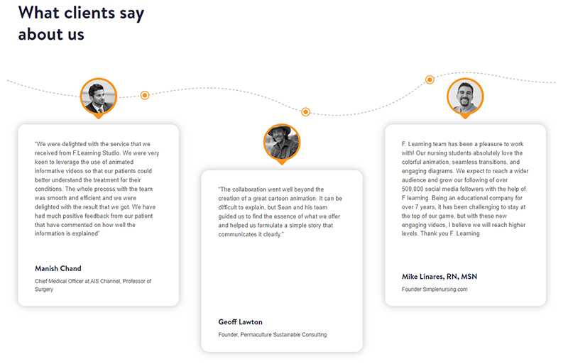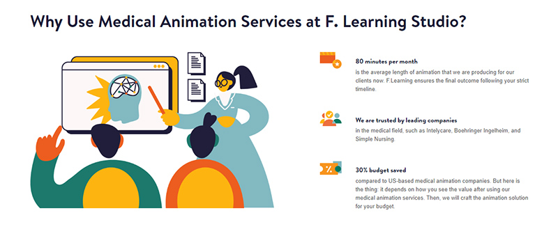 With a proven track record of completing 54 successful projects for 30 satisfied clients across more than 15 countries – including the U.S., Finland, Germany, and the UK – F. Learning Studio’s reach and expertise are unmatched. Renowned clients like Stanford University, NHS, Simple Nursing, UNSW, IntelyCare, and NYU trust F.Learning Studio for their animation needs, a testament to their commitment to excellence and innovation.