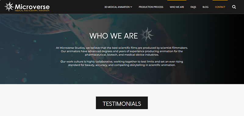 | Specializes in creating high-quality medical animations, particularly focusing on complex scientific concepts and mechanisms of action.Over a decade of experience in the medical animation industry. | Testimonials highlight Microverse’s ability to translate complex scientific information into engaging visuals. Clients praise their professionalism, responsiveness, and commitment to accuracy. |