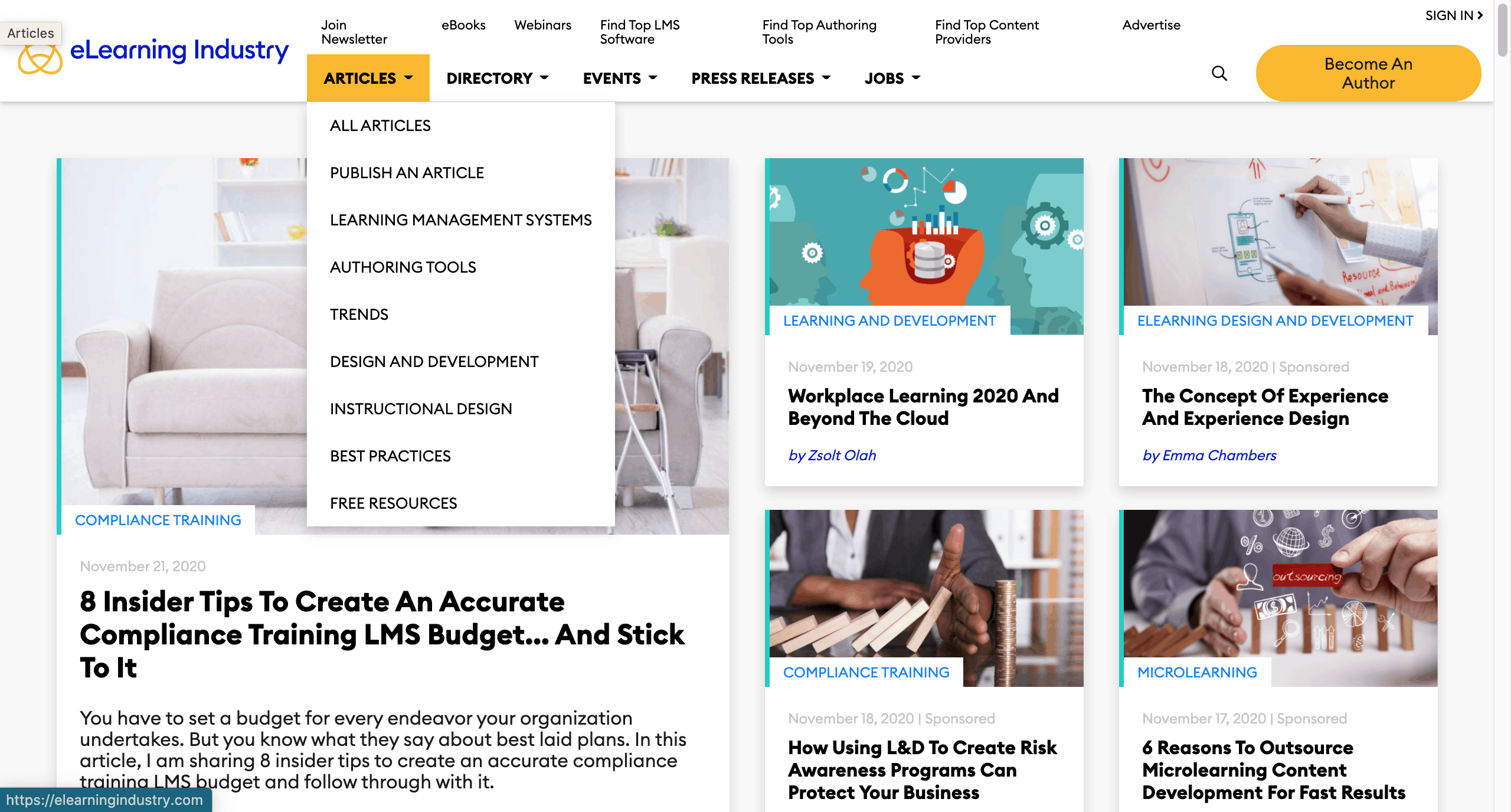 Leo Learning provides its audiences with all types of eLearning resources: blogs, webinars, ebooks, infographics, podcasts, etc. Mainly, its eLearning blogs cover the topics of strategy, content, and technology. However, articles are not the main strength of this page. The webinars that it holds earn the advantage of having lots of eLearning influencers. Since most of Leo Learning’s members are experts in the industry, its content holds a high credit position among others.