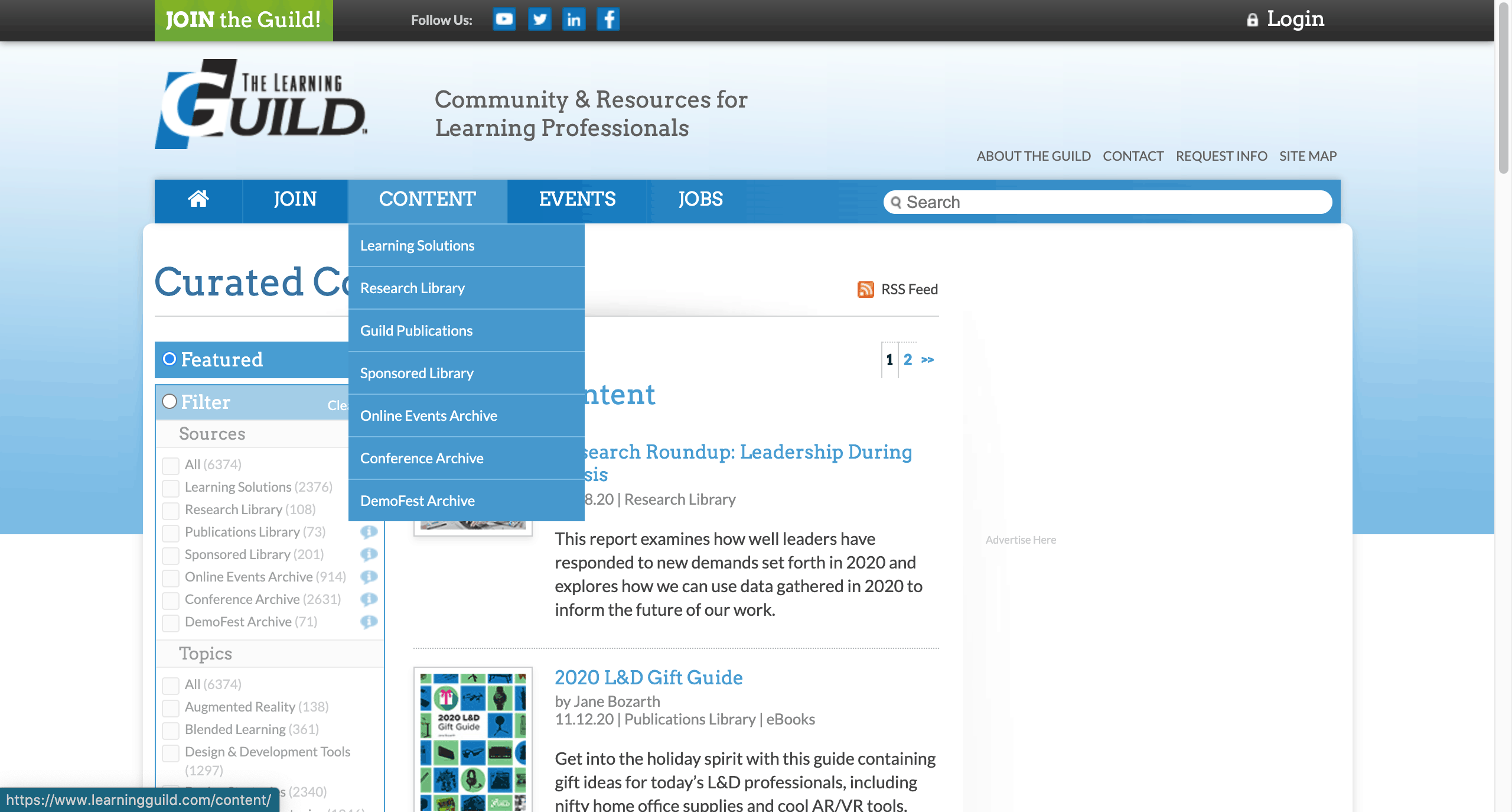 Unlike the eLearning Industry, The Learning Guild focuses itself on being an online library for the L&D and eLearning community. The Learning Guild centers on being the community and resources for most professionals. Its featured content is usually research books and publications.