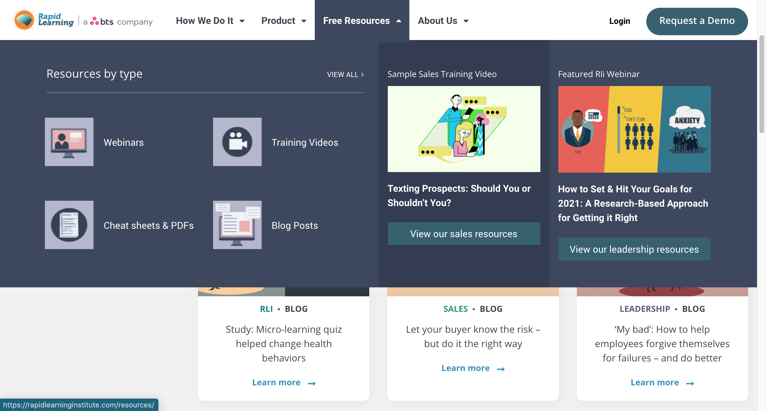 Since Rapid Learning is a division belonging to BTS, a big corporation, it’s no surprise that its eLearning resources are all well-done and well-written. Not only do they nail the eLearning blog content, but their resources are also different in the form of articles, webinars, training videos, and cheat sheets. “Best sales training blog articles” add great visual aids to their blog posts. Blogs belong to three main categories: sales, leadership, and training development.