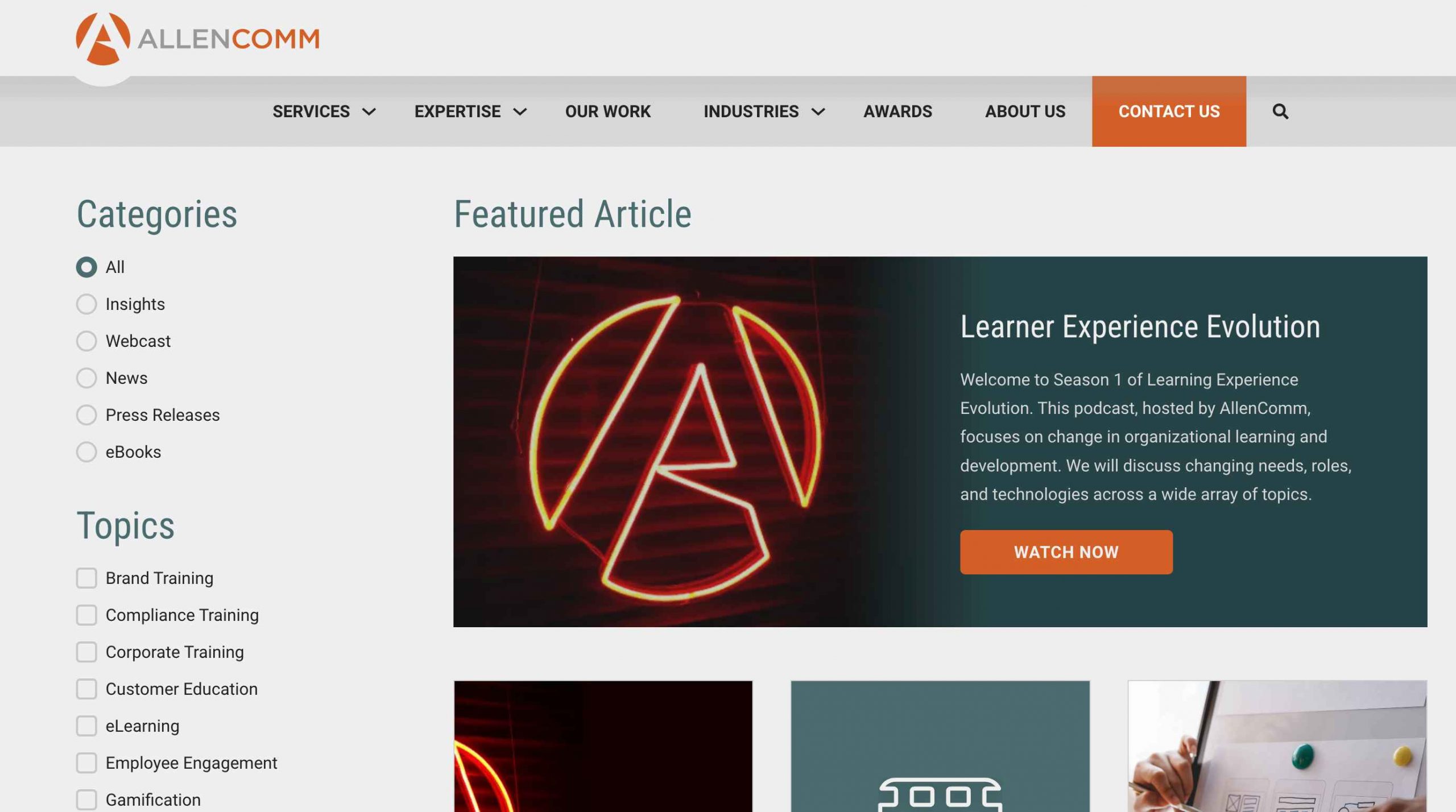 AllenComm is the leading corporate content provider in the US region. While promoting their products, their online learning blog covers L&D trends and workplace training solutions. They mostly put their efforts into articles with strong on-point topics and useful information for the L&D industry. However, their blog modules are relatively hidden from their homepage; they play the role purely of providing information.