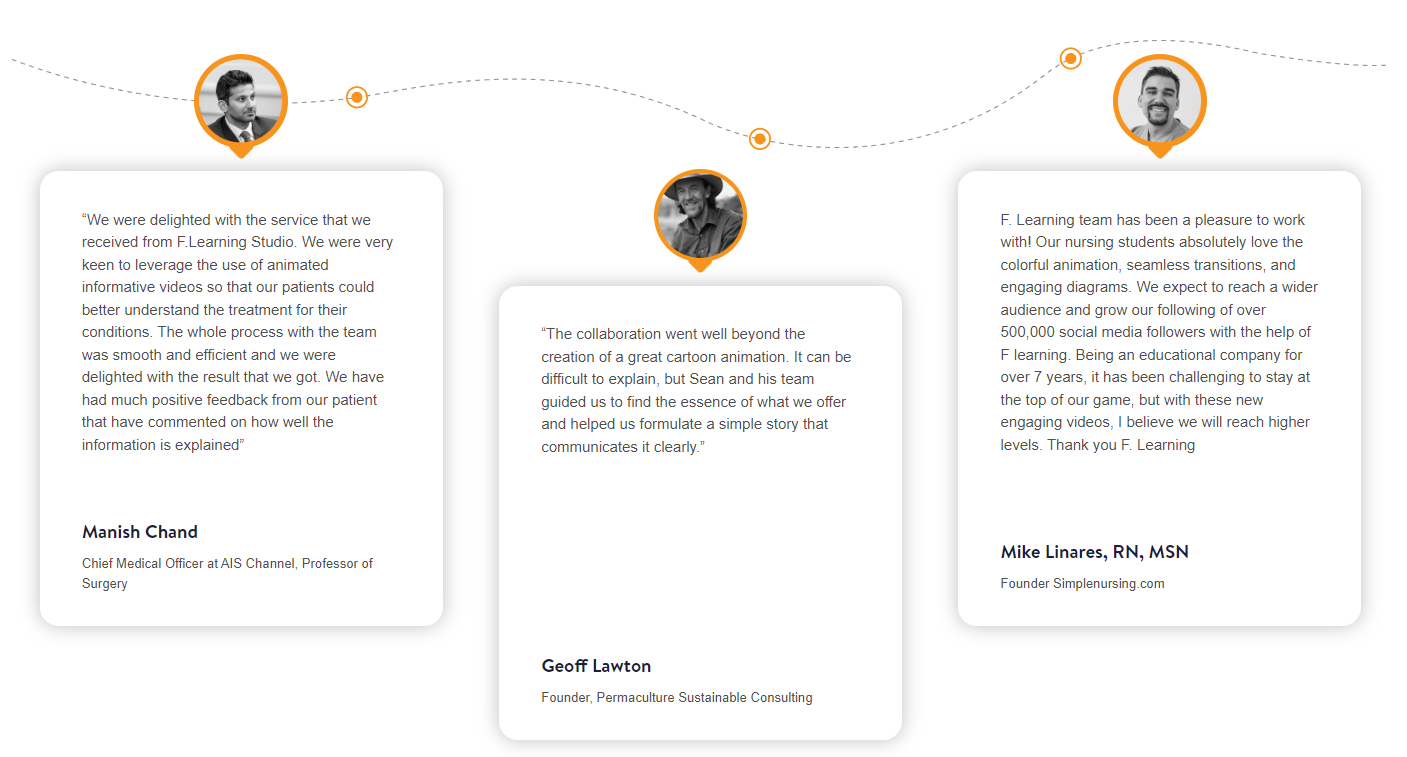 F.Learning is a training video production company that specializes in everything animation. We provide clients worldwide with top-quality corporate training video services across all sectors. Our satisfied customers include leading companies in nurse training, education, and HSE training.